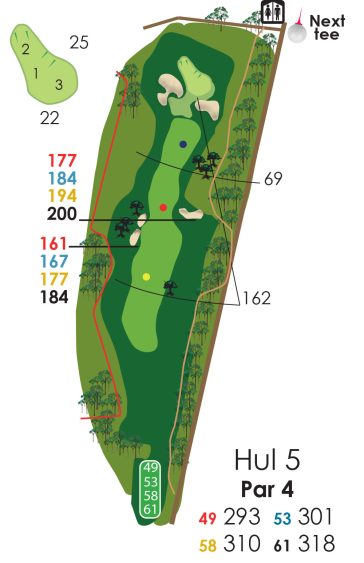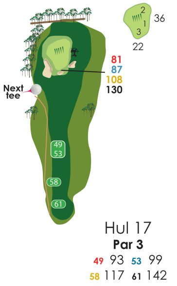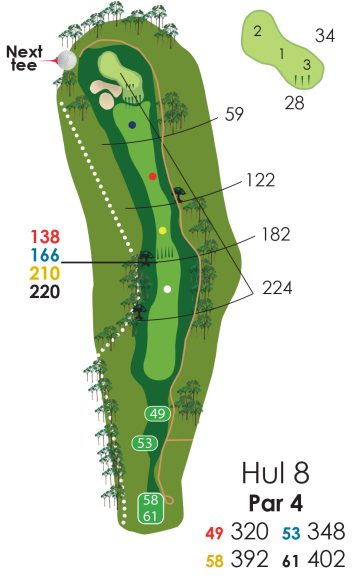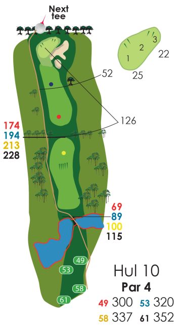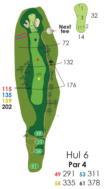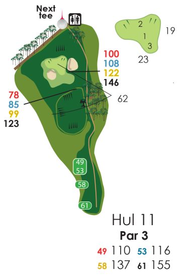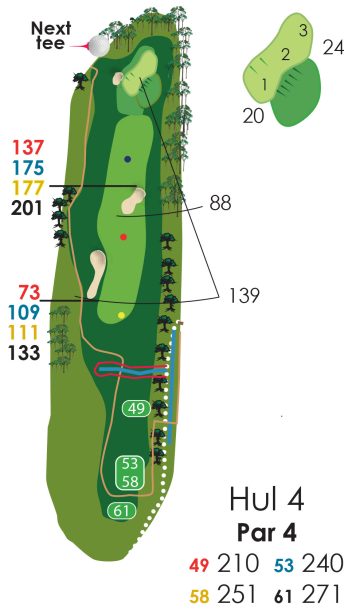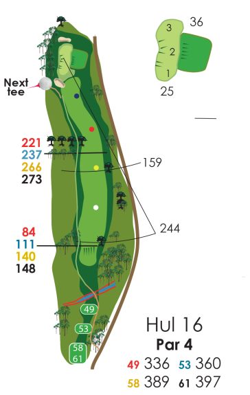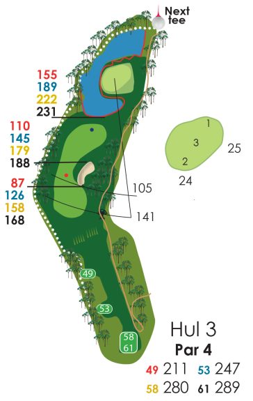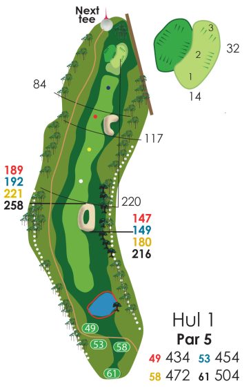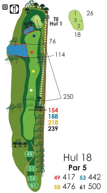 Hvis der er flagplaceringer (på green) så læs på væggen af starterhuset ved hul 1.
